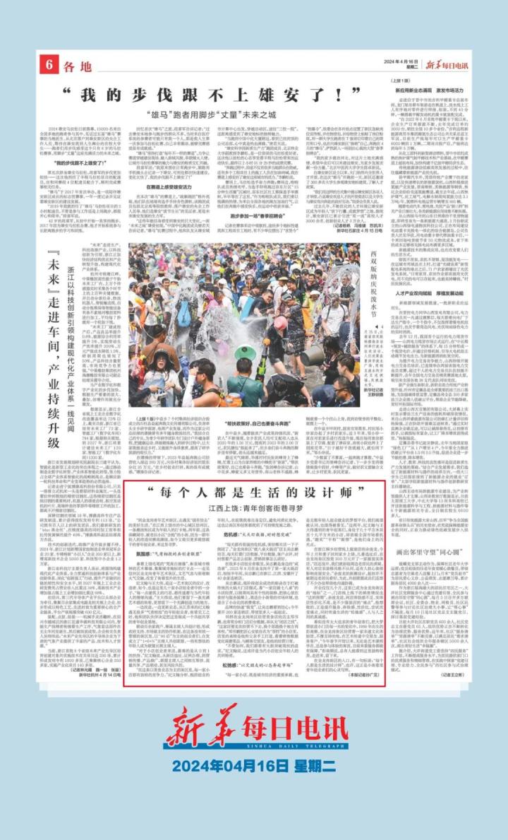 文章摘要:今天,新华每日电讯刊发了《“每个人都是生活的设计师” 江西上饶:青年创客街巷寻梦》