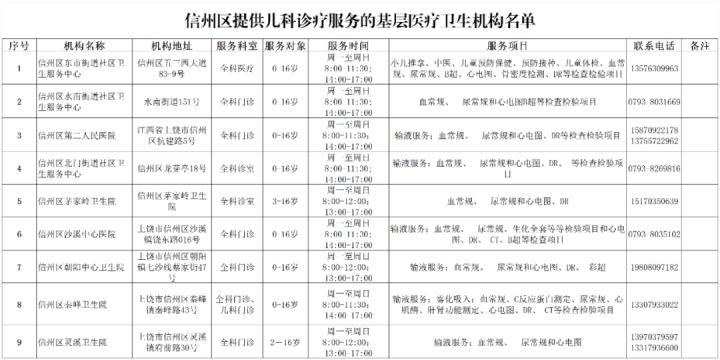 便捷又方便,信州区提供儿科诊疗服务的基层医疗卫生机构名单,请收藏!