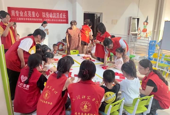 这个藏在小区里的乐园,不仅是孩子的欢乐天地,更是师范生成长的“练兵场”。上饶师范学院教师教育学院教师曹建荣说:“我们一直希望搭建一个学以致用的实践平台,推动师范生以专业劳动践行社会责任,在公益实践中实现专业精进与人格锤炼的统一。校园里的模拟试讲往往基于理想化情境,而‘童梦乐园’则是对‘全人培养’的真实预演。面对真实而复杂的教育情境,学生们被迫走出舒适区,推动他们从‘学生’向‘懂孩子、懂教育的预备教师’转变。”