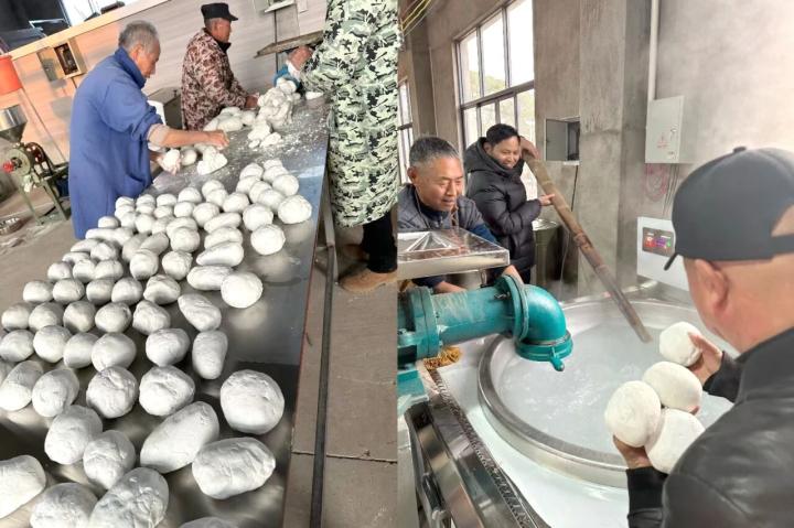 “传统手艺”焕新生:凌晨4点,村里的粉丝作坊就冒出了蒸汽,老徐正揉搓着温热的米粉团,反复捶打至细腻筋道,再通过漏勺漏入沸水,捞出后在竹竿上晾晒的粉干像银丝般挂满院子。上饶粉干是一张美食名片,在青金村,这门传统手艺被赋予了新的生命力。村民们坚持古法工艺,做出的粉干爽滑筋道,远近闻名。如今,小作坊逐渐走向规范化生产,线上线下销售渠道一齐打开,一碗碗地道的青金粉干,正品味出浓浓的幸福味。