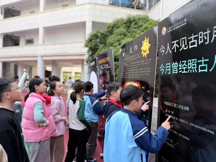 操场上,孩子们若有所思地望着头顶那颗明亮的天体,仿佛第一次真正理解了它的遥远与伟大。