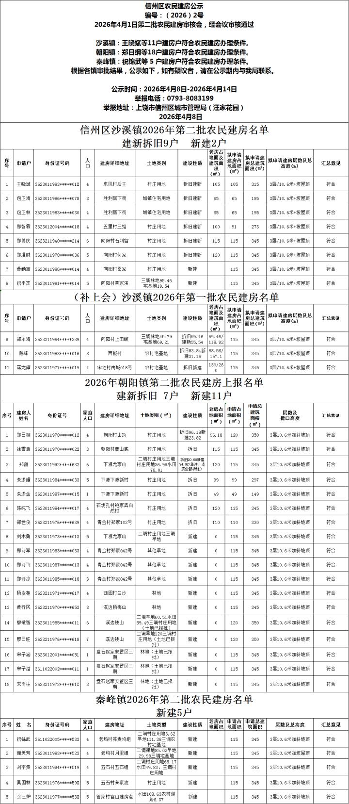 速看!信州区又一批农民建房公示来了