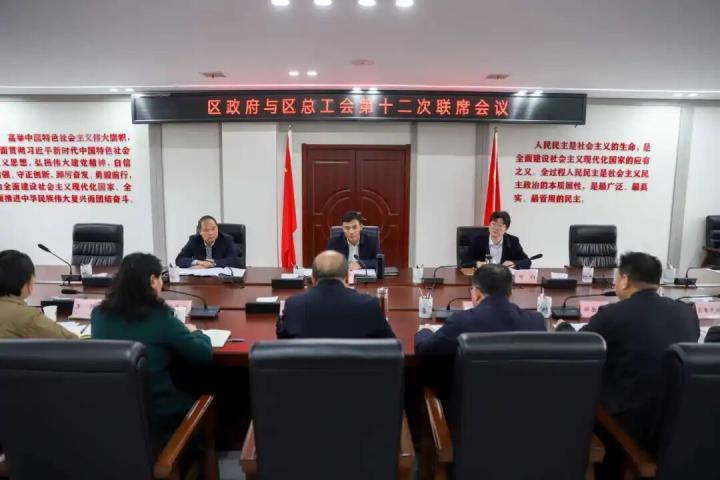 12月25日,区政府与区总工会第十二次联席会议召开。区委副书记、区长毛志方主持会议并讲话,区委副书记程钧,区人大常委会副主任、区总工会主席蒋德贤,副区长芮可文出席会议。