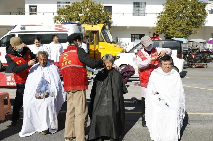 舞台之外,多元化的便民服务专区同样人气爆棚。义诊专区里,医护人员耐心为居民测量血压、解答健康疑问,普及冬季养生知识;义剪摊位前,理发师们手法娴熟,为老人、儿童免费修剪头发;反诈宣传区通过发放宣传手册、现场讲解典型案例等方式,帮助群众识破电信诈骗套路;公益助农专区陈列着本地的优质农产品,工作人员热情推介,助力特色农产品走进千家万户;移风易俗宣教区则通过现场宣讲,倡导文明节俭、婚事新办等新风尚,引导群众树立文明健康的生活理念。