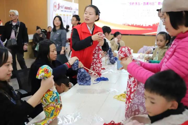 2025年11月29日,文公社区热闹非凡,居民络绎不绝。群众文艺汇演的13个节目轮番上演,歌声、笑声、掌声不断;养生锤DIY现场,居民与孩子们专注手工制作;信州区非遗传承人龚世云带来的剪纸教学也吸引了众多孩子,他们围坐学习,看着红纸在指尖化为精美图案,让中国传统文化悄然扎根。志愿者小张说:“能为社区出力,看着大家开心参与,特别有意义。”