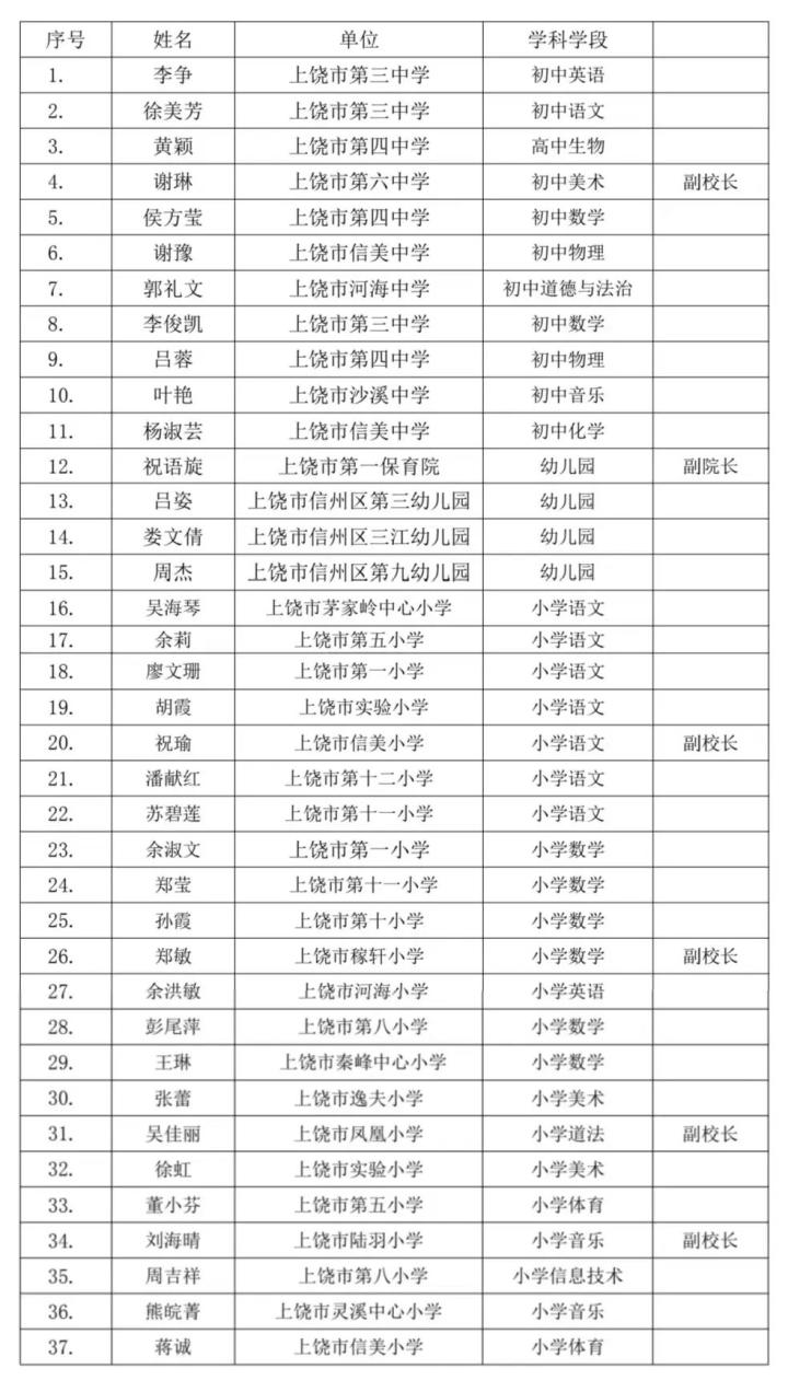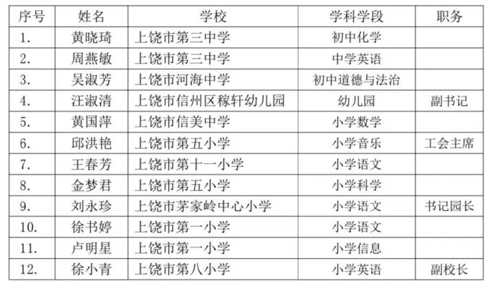 信州区拟推荐上饶市第七批中小学学科带头人和第三批骨干教师人选公示