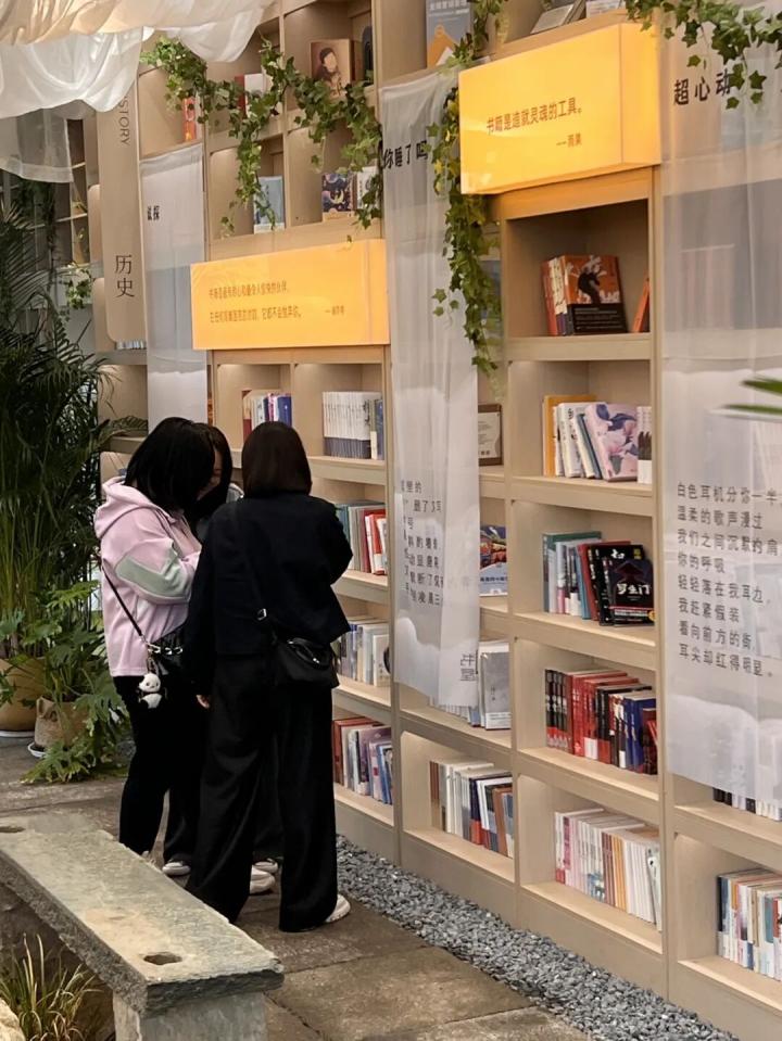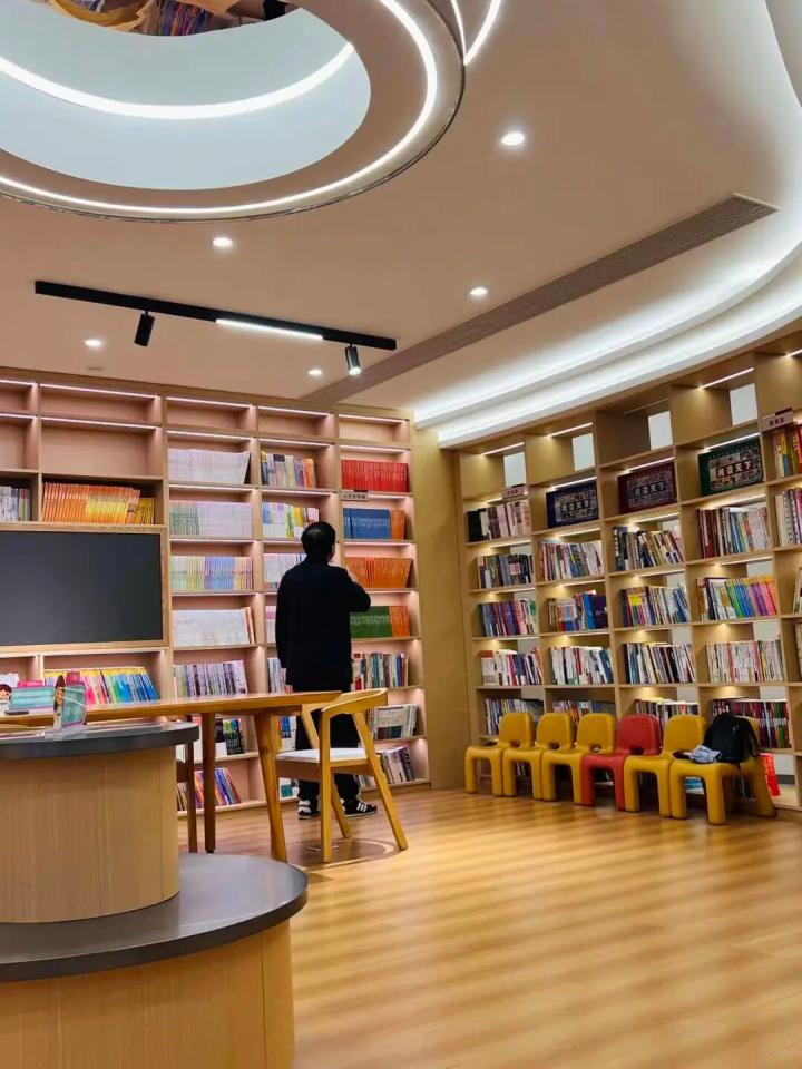 这处融合了自然景观与书香韵味的阅读空间,突破了传统图书馆的时空局限,以层林为帷幔,蓝天白云映书窗,推开木门,阳光穿过叶隙,在木书架上投下碎金般的光影,每一本书都仿若有生命,不再是冰冷的陈列,而是可以伸手触摸的知己。在这里,社科的广博、文学的寥阔、绘本的童趣……皆能觅得踪迹。