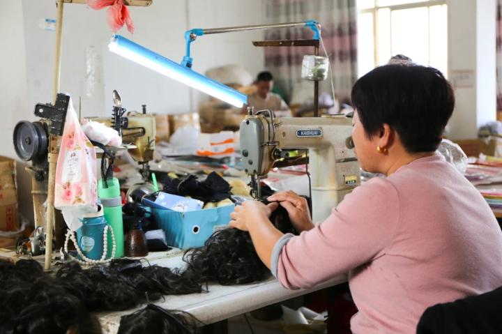 在政府的政策扶持和资金帮扶下,假发厂员工平均月收入较之前提升约40%。“在家门口不太好找工作,只能帮人家做一些零工,一个月就挣点买菜钱。”假发厂的编织车间里,王阿姨熟练的做着手头的工作,语气里满是感慨。“现在做这个假发的工作,每个月能多拿好几千呢,补贴完家用还能存下不少。”很多家庭靠着车间的“发丝经济”,实现了就业增收、生活提质的心愿。