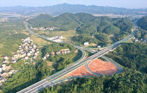 图为2025年10月8日在江西省上饶市信州区秦峰镇境内拍摄的上浦高速公路秦峰出口。