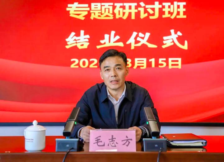 3月15日,为期三天的全区科级主要领导干部学习贯彻党的二十届四中全会精神专题研讨班圆满结业。区委副书记、区长毛志方在结班仪式上为学员们作专题辅导并小结。