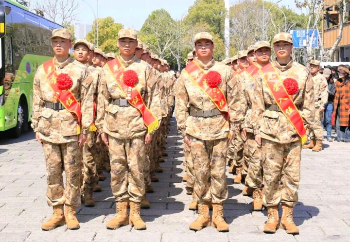“身披戎装,志在四方;保家卫国,铸就荣光!”铿锵有力的出征口号响彻现场。胸戴红花的新兵们精神抖擞、意气风发,带着家乡人民的美好祝福,迈着坚定步伐踏上军旅征程。大家纷纷表示,将牢记使命、刻苦训练,努力成长为新时代合格军人,为国防和军队现代化建设贡献信州青年力量。(记者 韩啸)