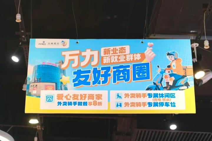 记者了解到,今年以来,信州区“新就业群体友好场景”遍地开花,金龙岗潮街、万力时代广场、万达广场变身“友好街区”和“友好商圈”……为新就业群体提供专属停车区、暖新驿站、商家折扣等贴心服务;友邦一号公馆、建发央著小区等“友好小区”建设让快递员、骑手进门无忧;市立医院的“新业医享驿站”为新就业群体们提供健康关怀……“进门难、停车难、吃饭难、休息难”困难正在被逐一化解,新就业群体感受到了实实在在的幸福。