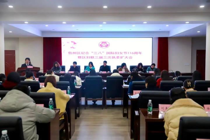 3月6日,信州区纪念“三八”国际妇女节116周年大会暨区妇联三届三次执委(扩大)会议召开,区政协副主席邱模恺出席并讲话。