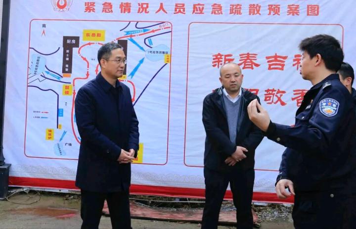 潘表光来到东岳护国寺,实地察看寺院重点区域、消防设施、疏散通道及森林防火卡点,详细听取客流管控、隐患排查、应急值守、安保部署等工作汇报,现场检查安全防范措施落实情况。他指出,春节期间香客游客密集,安全工作必须做得更实、更到位,各级各部门要提高思想认识,以“时时放心不下”的责任感,抓实消防安全、人流疏导、应急处置、值班值守等关键工作,坚决防范各类安全风险,全力保障春节期间寺院秩序平稳、群众祈福安全。